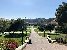 Архитектурной доминантой кампуса является университетская библиотека, постороеная в неороманском стиле.