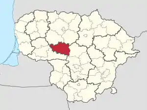 Расположено в центральной Литве, на Нижненеманской низменности, в южной части Расейняйского района.[6][7]