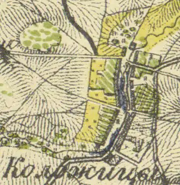 Затем, как деревня Коложицы она упоминается на карте Санкт-Петербургской губернии Я. Ф. Шмита 1770 года[6].