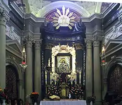 Коронация чудотворного образа Богоматери Кальварийской состоялось 15 августа 1887 года. Коронацию провёл кардинал Альбин Дунаевский. В церемонии приняли участие архиепископ Львова Северин Моравский и армянский архиепископ Исаак Исаакович. Золотая корона Младенцу Иисусу была передана в дар паломниками из Тешинской Силезии, в то время как корона Богоматери была пожертвована прихожанами архиепархии Кракова. Инсигнии были благословлены Папой. В 1936 — 1937 годах инженером Станиславом Ямрозом был разработан проект нового мраморного альтаря для образа Богоматери Кальварийской .