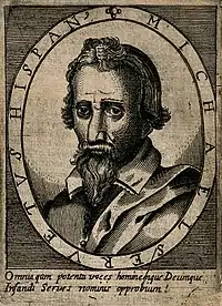 В августе 1553 года в Женеве появился врач и гуманист Мигель Сервет, который отвергал догмат о Троице и крещение младенцев[64]. Ранее, в июле 1530 года в Базеле он вступил в спор с Иоганном Эколампадием по этим вопросам и был изгнан из города. После изгнания Сервет отправился в Страсбург, где опубликовал трактат против Троицы. Мартин Буцер публично опроверг трактат и попросил Сервета покинуть город. Вернувшись в Базель, Сервет опубликовал «Две книги диалогов о Троице» (лат. Dialogorum de Trinitate libri duo), которые вызвали большой резонанс среди реформаторов и католиков. Инквизиция в Испании приказала арестовать его.