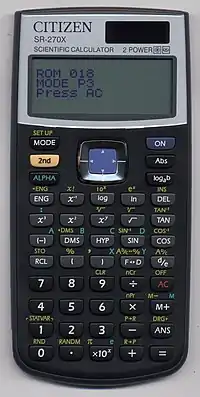- Реализуют алгебраическую логику, с приоритетами операций и скобками; реже применяется обратная польская запись. Поддерживают вычисление элементарных функций. Обычный минимум: квадрат и квадратный корень, обратная функция, десятичные и натуральные логарифмы и антилогарифмы, прямые и обратные тригонометрические функции; развитые модели реализуют более широкий набор элементарных функций, могут также поддерживать статистические расчёты, переводы мер из одной системы в другую, преобразования углов из системы «градус, минута, секунда» в десятичные доли градуса и обратно, логические функции, работу в различных системах счисления, тригонометрические расчёты с углами в градусах, радианах и градах. Общее число поддерживаемых функций может составлять до нескольких сотен.