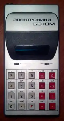 Первым карманным программируемым калькулятором в СССР была «Электроника Б3-21» выпускавшаяся с 1977 года; использовала логику RPN с двумя операционными регистрами, память на 13 регистров и 60 шагов программы. Калькулятор стал родоначальником серии, куда вошли, кроме него, настольные калькуляторы МК-46, МК-64, MC-1103, совместимые по архитектуре и системе команд, с дополнительными возможностями — могли работать в качестве средства контроля производственного процесса, для чего имели систему ввода с измерителем напряжения на 8 каналов и дополнительный индикатор для отображения отклонения измеренного значения от вычисленного.