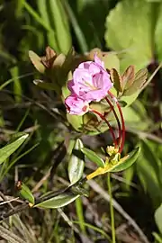 - Kalmia microphylla (Hook.) A.Heller — Кальмия мелколистная. Вечнозелёный кустарник высотой до 0,6 м. Распространён на западе Северной Америки от Калифорнии до Аляски.