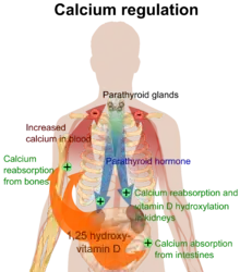 Концентрация кальция в крови человека из-за её важности для большого числа жизненно важных процессов точно регулируется, и при правильном питании и достаточном потреблении молочных продуктов и витамина D дефицита не возникает. Длительный дефицит кальция и/или витамина D в диете приводит к увеличению риска остеопороза, а в младенчестве вызывает рахит.