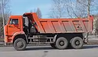 Автомобиль-самосвал имеет классическую компоновку с колёсной формулой 6х6[2].