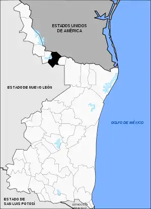 Он граничит с другими муниципалитетами штата Тамаулипас: на востоке с Густаво-Диас-Ордасом, на западе с Мигель-Алеманом, на юге с другим штатом Мексики — Нуэво-Леоном, а на севере проходит государственная граница с Соединёнными Штатами Америки[4].