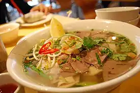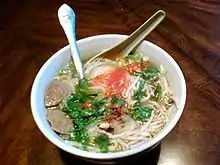 Камбоджийская кухня отличается разнообразием лапши, в которой разные типы лапши используются в разных бульонах, таких как бульон kuy teav , который едят с лапшой mee sua или lort. Кхмерская лапша возникла под влиянием Китая и во многом похожа на другую лапшу Юго-Восточной Азии.