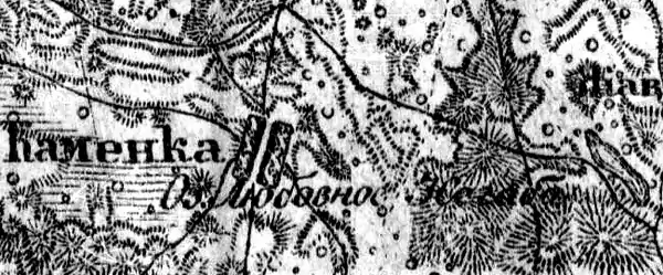 КАМЕНЕЦ — деревня принадлежит её величеству, число жителей по ревизии: 84 м. п., 88 ж. п.[3] (1838 год)