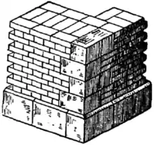 - Уступ — вид кладки, при которой часть стены смещена по вертикали по отношению ко всей стене[~ 4].