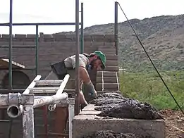 По сравнению с легкобетонными камнями имеет большую теплопроводность, плотность, прочность и долговечность. Применяют в постройке внутренних и наружных стен[~ 10].
