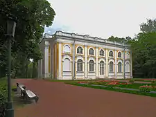 В 1843 году по настоянию Елены Павловны здание было перестроено под лютеранскую кирху св. Елены. Здесь проходили семейные торжества с участием её зятя Георгия Мекленбург-Стрелицкого, а потом и внуков. В 1902 году архитектор О. Паульсен надстраивает над западной частью здания каменную колокольню, которая была снесена в 1967 году, когда реставратор М. М. Плотников вернул зданию предполагаемый изначальный облик в стиле елизаветинского барокко. Апсида с восточной стороны и ризалит с западной и сегодня напоминают о времени, когда парковый павильон служил храмом.