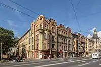- Каменноостровский проспект, 13, 16, 20 — ансамбль жилых домов построенный в 1901—1906 годах на пересечении проспекта с Ружейной улицей (ныне улица Мира) по проекту В. В. Шауба. Яркий пример стиля модерн. 29 октября 1992 года этот перекрёсток был назван Австрийской площадью[18][19].