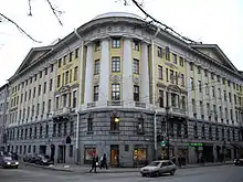 - Дом № 55 — дом совторгслужащих, 1930—1932, конструктивизм, арх. Е. А. Левинсон и А. М. Соколов. Проект получил первую премию на Всесоюзном конкурсе 1929 года. В здании поместились 90 квартир, общежитие на 80 комнат, во дворе — полуротонда с клубным залом, в котором с 1989 года располагается драматический театр «Особняк». Е. А. Левинсон жил и работал здесь с 1931 по 1968 год[39]. В кв. № 42 с 1930 года жил кинорежиссёр Ф. М. Эрмлер, в кв. № 19 жили кинооператор А. Н. Москвин (с конца 1932) и его жена, кинорежиссёр Н. Н. Кошеверова[40].