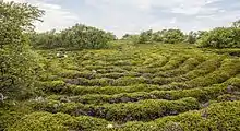 Диаметр лабиринтов варьируется от 3 до 25,4 метров. Как правило камни, из которых они состоят, имеют диаметр 30-40 сантиметров. Линия лабиринта состоит из установленных в ряд валунов, при этом строки закручены спиралью. Часто спирали две, при этом их можно сравнить с двумя змеями, которые смотрят друг другу в глаза в центре фигуры. Толщина спиралей неоднородна — иногда брались камни выше или шире. Концы спиралей, как правило, расширены. Вход в лабиринт чаще всего с южной стороны, но также встречаются входы и в юго-западной, восточной или западной частях фигуры. Лабиринты делят на пять основных типов по разным параметрам, но каждый имеет только один вход, который также служит в качестве выхода.