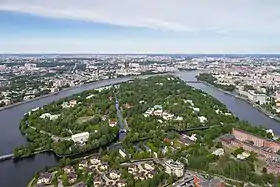 Фактически Каменный остров — это не один, а несколько островов на севере Санкт-Петербурга[3], разделённых каналами. Расположены между Большой и Малой Невками и речкой Крестовкой. Каменный остров насыщен историческими памятниками, усадьбами и дачами известных людей, коваными оградами и зелёными парками. Посреди одной из аллей до 1990-х годов стоял дуб, посаженный Петром Первым[4].