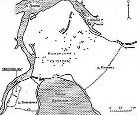 - Гаврилюк Н. А. Каменское городище и его округа // Проблемы скифо-сарматской археологии. — Запорожье, 1987. — С. 31-32.