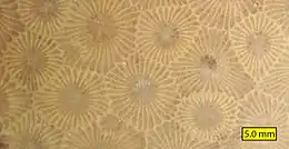Крупный план Hexagonaria percarinata из Мичигана.