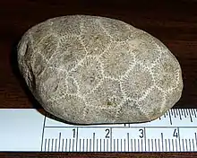 Камень Петоски — осадочная горная порода, являющаяся окаменелостью вымершего вида четырехлучевых кораллов Hexagonaria percarinata[1], встречается в основном в форме гальки или булыжника. Камни были сформированы в ледниковую эпоху у берегов нынешнего озера Мичиган надвигающимся льдом, который, двигаясь по горной породе, шлифовал и прессовал колонии в твердый округлый камень. Камни находят в основном на северо-западе (иногда на северо-востоке) нижнего полуострова штата Мичиган, в основном на берегу и в песчаных дюнах. В некоторых районах штата Мичиган можно встретить окаменелости целых колоний коралла.
