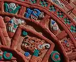 - В верхнем правом квадрате изображена первая эра Четыре Ягуар, которая закончилась истреблением людей чудовищными ягуарами, появившимся из недр земли. Представляет стихию земли.