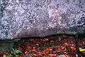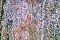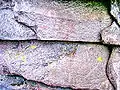 Поверхность скалы достаточно ровная серого цвета, местами здесь образовались белёсые, красноватые и коричневые натеки. На камне можно встретить лишайники причудливых форм и самых разнообразных расцветок: зеленые, желтые, лимонные, оранжевые, тёмно-серые, красноватых оттенков.