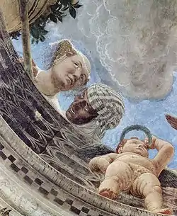 | Фрагмент плафона | Плафон с окулюсом | Автопортрет Мантеньи, замаскированный в декоре |