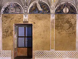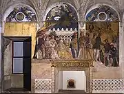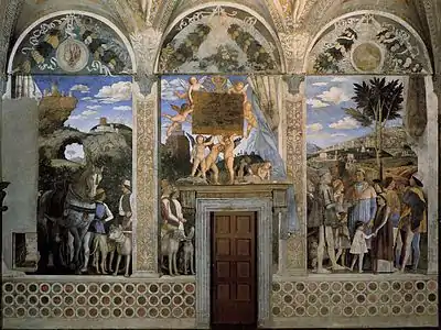 | Маркиз Лодовико Гонзага и его секретарь Марсилио Андреаси | Северная стена | Паола Гонзага |