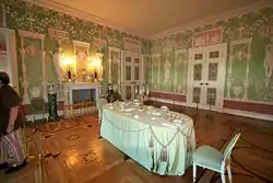 Несмотря на разрушения дворца немецкими войсками[15] во время Великой Отечественной войны, некоторые интерьеры уцелели (Комплекс Холодных бань сохранился полностью), были отреставрированы, и являются характерными памятниками камероновского стиля. Особенно интересны Зелёная и Купольная столовые. Замечательна анфилада небольших покоев Екатерины в Зубовском корпусе дворца, среди которых необычны по отделке Опочивальня, Диванная, так называемая Табакерка.