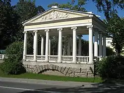 Неподалёку от дворца в долине реки Славянки Камерон создал несколько замечательных по гармонии с природой и красоте архитектурных композиций из павильонов и мостиков. Среди них выделяется образной близостью к античному круглому храму павильон «Храм Дружбы» (1780—1782 годы). в этом сооружении искусно сочетается римская ротонда с римским дорическим ордером колоннады круглого периптера.