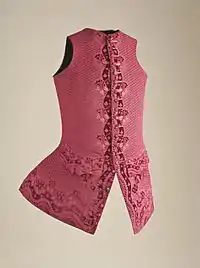 Камзо́л (фр. camisole — кофта) — мужская одежда (воинская или придворная), сшитая в талию, длиной до колен, иногда без рукавов, со стоячим или отложным воротником, надевавшаяся под жюстокор. Появился во Франции в 1-й половине XVII века; в XVIII веке получил распространение в других странах Западной Европы, а также в России (с введением западноевропейского костюма среди дворян). Камзол делался из сукна, шёлка, бархата, украшался вышивкой, галуном, пуговицами. В XVII веке камзол носили под доспехи, позже стали носить уже без них, оставив только железный воротник, переходивший в нагрудник[1].