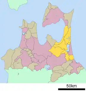 ![]() Расположение уезда Камикита (жёлтый цвет) в префектуре Аомори. | |
