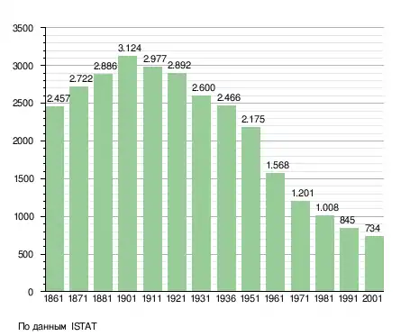 Население составляет 798 человек (2008 г.), плотность населения составляет 42 чел./км². Занимает площадь 18 км². Почтовый индекс — 15020. Телефонный код — 0142.
