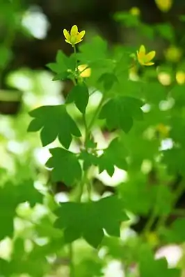 Цветки собраны в рыхлое щитковидной соцветие по 2—6. Лепестки 4,5—6 мм длиной, ярко-жёлтые, в основании оранжеватые. Чашелистики в 3—4 раза короче лепестков. Завязь верхняя.