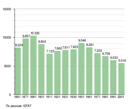 Население составляет 5674 человека (2008 г.), плотность населения составляет 573 чел./км². Занимает площадь 10 км². Почтовый индекс — 16032. Телефонный код — 0185.