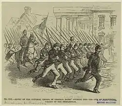 27 апреля бригада Роберта Милроя (3 000 человек) выступила из Монтеррея и вошла в Макдауэлл. Бригада Шенка (ещё 3 000 человек) следовала за ней. Предполагалось, что остальные части департамента прибудут вместе с Фримонтом, и общая численность армии достигнет 15 000 человек[30]. Фримонт рассчитывал на прибытие дивизии Бленкера ещё в середине апреля, но части дивизии стали прибывать только в начале мая и только 11 мая они были собраны, и им был дан смотр. Обнаружилось, что дивизия находится в непригодном для боя состоянии: солдыты необуты, часто лишены одеял и мундиров, вооружены старыми австрийскими или бельгийскими ружьями и боеприпасов у них совсем мало. Полковник Альберт Трейси, начальник штаба армии Фримонта, полагал, что этой дивизии необходимы 10 - 20 дней на приведение себя в порядок[31].