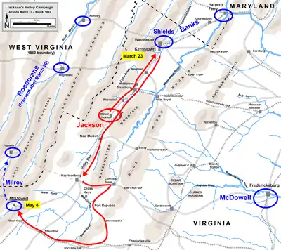 21 марта Джексон узнал, что армия противника разделилась, и о том, что в долине осталась только дивизия Шилдса.