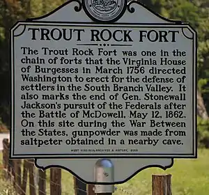 ![]() Мемориальная доска в месте, где Джексон прекратил преследование противника после сражения при Макдауэле | |||