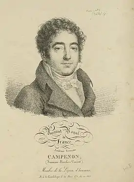 Франсуа-Николя Венсан Кампенон (фр. François-Nicolas Vincent Campenon; 29 марта 1772, Сен-Франсуа, Гваделупа — 29 ноября 1843, Вилькрен, департамент Валь-де-Марн региона Иль-де-Франс) — французский поэт и переводчик с латыни и английского языка. Член Французской академии (с 1813).