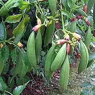 Плод — коробочка, удлинённый двухстворчатый кожистый стручок. Створки при созревании деревянистые, гладкие с редкими разбросанными чешуйками или уплощенными железами. Семена многочисленные, плоские, перепончатые, с полупрозрачными крылышками.[5]