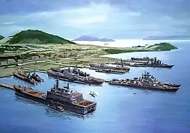 ![]() Залив Камрань с советским военным флотом. Плакат 1985 года. | |