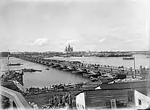 Во время Великой Отечественной войны мост подвергался бомбардировкам Люфтваффе, однако, остался невредимым, благодаря удачной маскировке. Так же мост защищали зенитные расчёты ПВО, расположенные на месте центрального шатра портового склада (собора Александра Невского) и башнях Кремля.