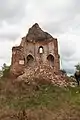 Значительная часть северной стены разрушена. С внутренней стороны на южной и северной стенах имеются 5 ниш вероятно от балок перекрытия. С восточной стороны в верхней части нижнего яруса посредине имеется окно. Размеры: высота — около 20 м, основание — 8,6×8,6 м.