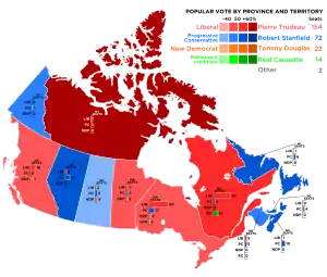 | Результат выборов | Новый премьер-министр: Пьер Трюдо (либеральная партия) Прежний премьер-министр: Пьер Трюдо (либеральная партия) | ||