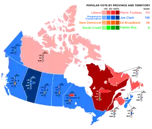 | Результат выборов | Новый премьер-министр: Джо Кларк (прогрессивно-консервативная партия) Прежний премьер-министр: Пьер Трюдо (либеральная партия) | ||