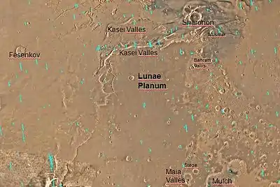 Системы каналов оттока на Марсе традиционно называются именами бога Марса в различных древних языках, либо — реже — в честь крупных рек на Земле.