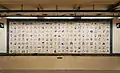 Стена с пиктограммами по мотивам китайских иероглифов в переходе между станциями