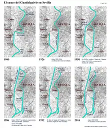 Новый канал был объединен в Сан-Хуан-де-Аснальфараче со старым заброшенным каналом после создания канала Альфонсо XIII. Таким образом река была заблокирована дамбой в Чапине — северном входе реки в Севилье. Благодаря этому была построена часть дока, который полностью получил название канала Альфонсо XIII как старый рукав реки, закрытая на север вышеупомянутой пробкой, и на юг замком порта.