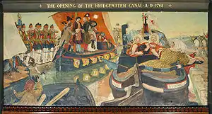 В Англии первый судоходный канал «Сэнки», соединивший угольные копи Сент-Хеленса с рекой Мерси, был построен только в 1757 году, но вскоре потребности развивавшейся промышленности вызвали необходимость развития сети каналов, прежде всего для доставки каменного угля. В 1761 году был построен Бриджуотерский канал, соединивший шахты в Уорсли с Манчестером. С этого времени началась так называемая каналомания. Выдающимся строителем каналов в Англии был Джеймс Бриндли, который предложил строить каналы без перепадов высот, что позволяло отказаться от шлюзов. Построенный им Бриджуотерский канал начинается от подземного шахтного горизонта и идёт к Манчестеру, пересекая долину реки Эруэлл по единственному в мире Бартонскому поворотному акведуку. Современники называли этот канал восьмым чудом света[3].