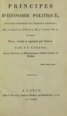 - Canard N.-F. Principes d’économie politique — Paris : F. Buisson, 1801, in-8, 236 p.