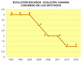 Ниже приведены результаты выборов для Канарской коалиции и её союзников в испанский и автономный парламенты, островные и муниципальные советы, а также в Европейский парламент. Данные взяты с сайта Министерства внутренних дел Испании.[13]